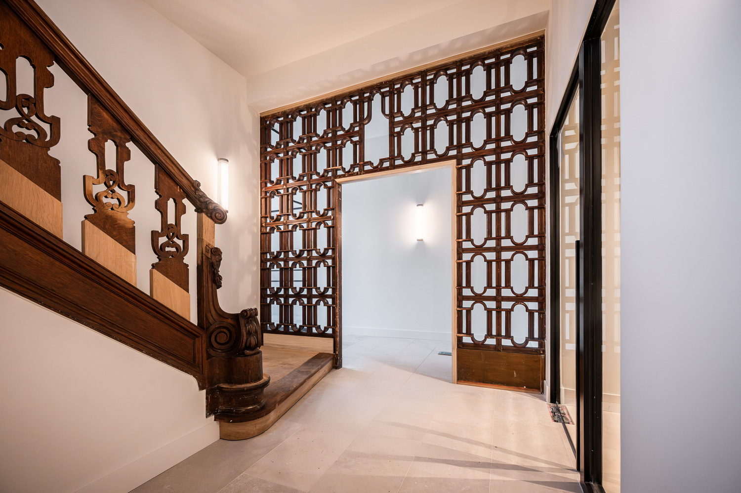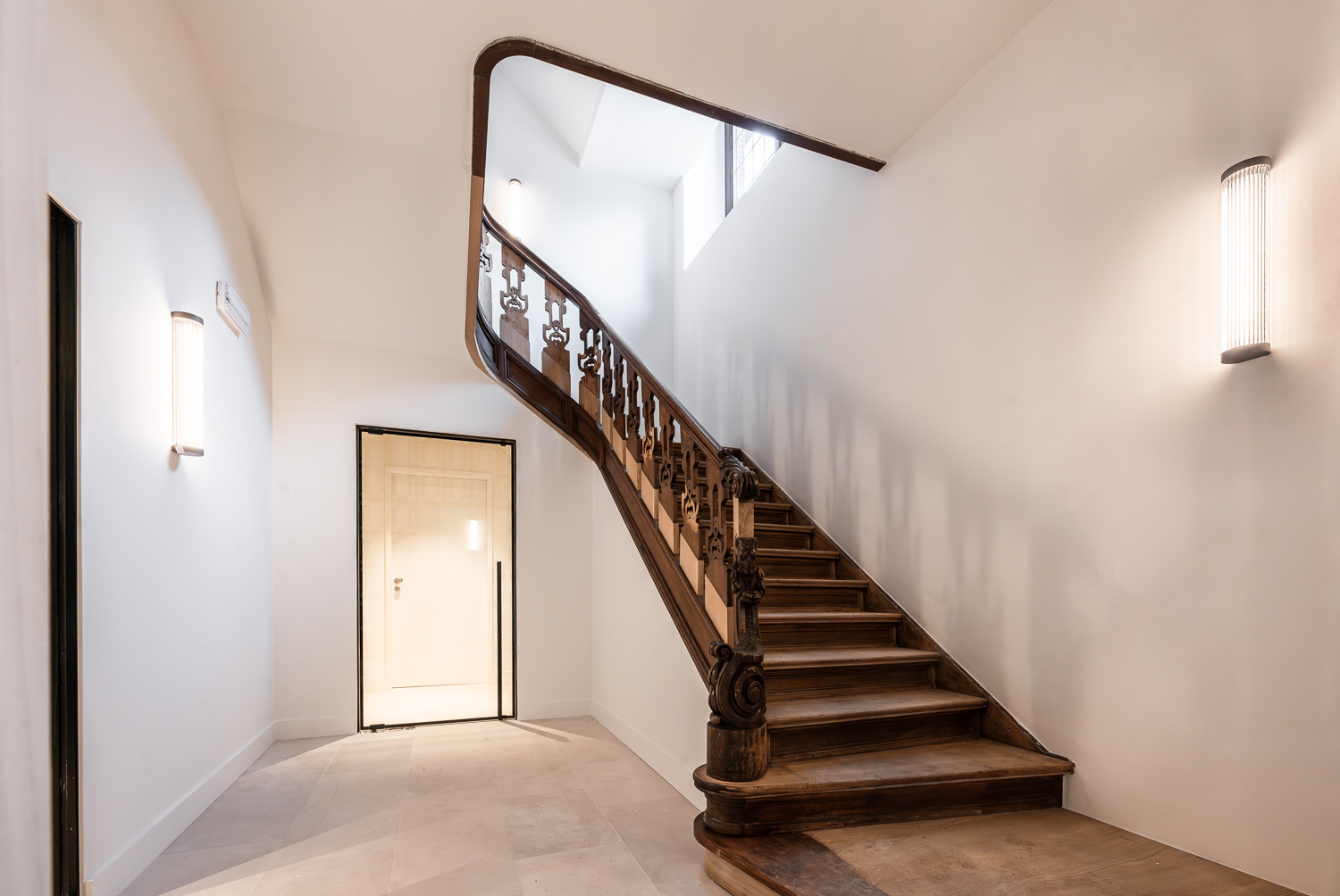 Bewonder meteen bij het binnenkomen de monumentale neo-Lodewijk XVI-trap.